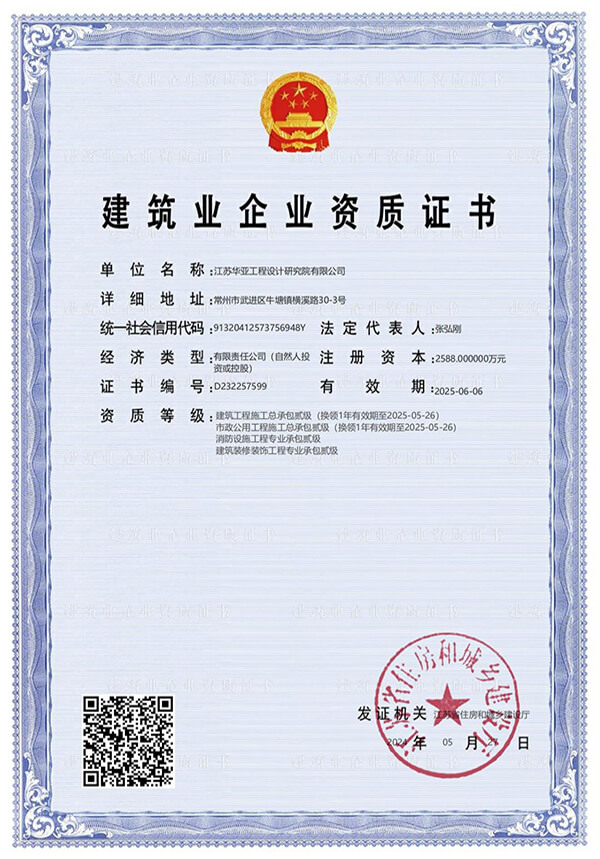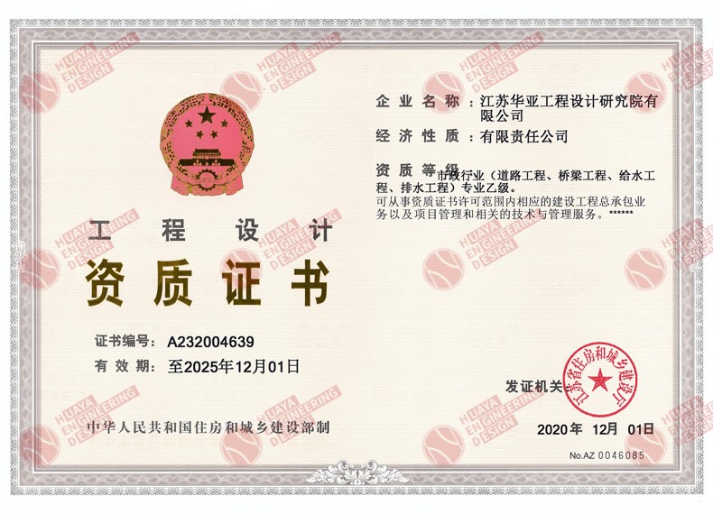 2020年06月獲得裝修裝飾工程專業承包貳級資質;2020年12月獲得市政行業(道路工程、橋梁工程、給水工程、排水工程)專業乙級設計資質。